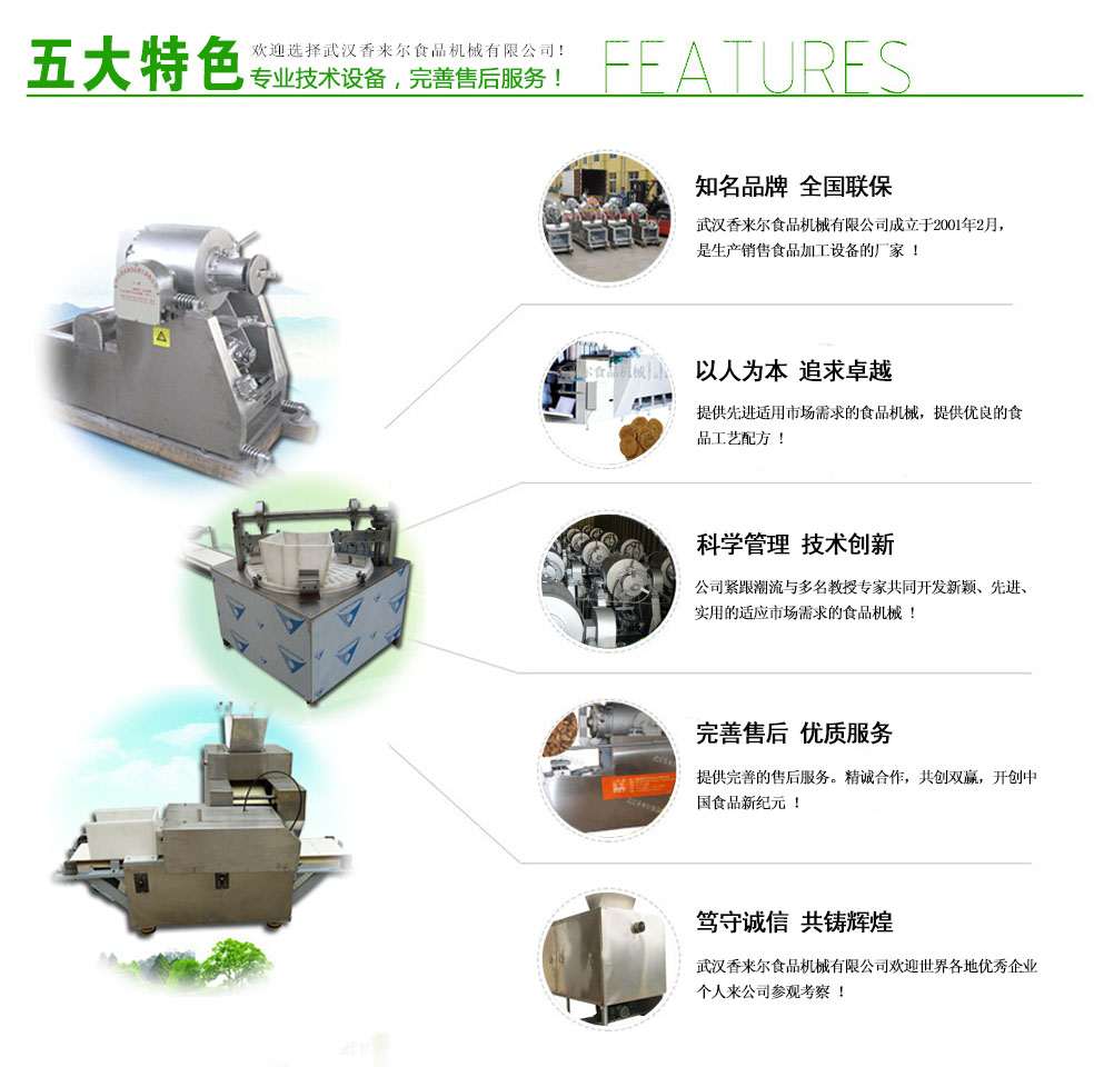 武漢香來爾食品機(jī)械有限公司成立于2001年2月,是生產(chǎn)銷售休閑食品加工設(shè)備的廠家。公司緊跟市場潮流與華工、華農(nóng)多名共同開發(fā)新穎、實(shí)用的適應(yīng)市場需求的食品機(jī)械,自有車、刨、鉆、銑、剪板、折彎等先l進(jìn)機(jī)床100多臺 套。7年誠信通會員,產(chǎn)品出口拉美、非洲、東南亞、歐洲等很多國家和地區(qū),國內(nèi)很多食品企業(yè)都是我們的合作伙伴。目前公司專門設(shè)立一個的售后 服務(wù)班子,在公司逐步發(fā)展強(qiáng)大的過程中,一直堅(jiān)持售后服務(wù)的同步發(fā)展,精良的食品設(shè)...